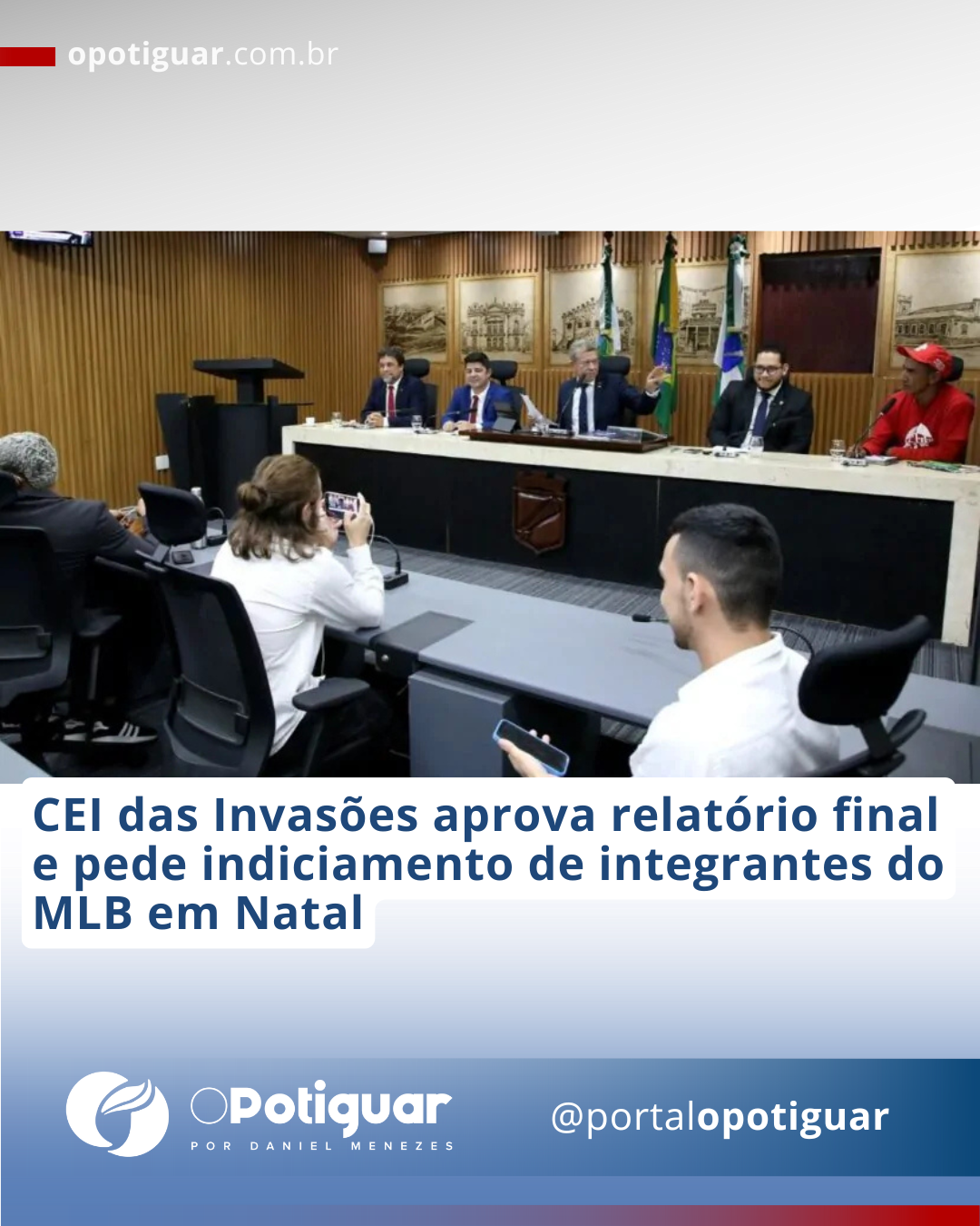 Após quase quatro meses de trabalhos, a CEI das Invasões da Câmara Municipal de Natal aprovou seu relatório final nesta terça-feira 29. O documento pede o indiciamento de três lideranças do Movimento de Luta nos Bairros, Vilas e Favelas (MLB) por crimes como esbulho possessório, extorsão, associação criminosa e dano ao patrimônio.