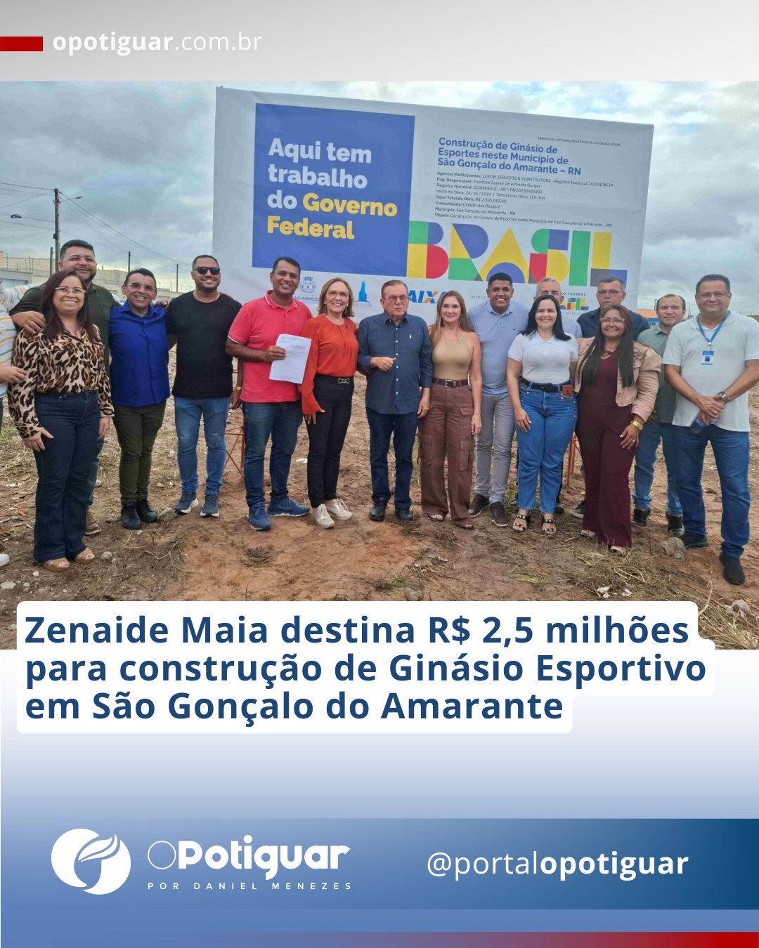 Na tarde desta terça-feira (29), a senadora Zenaide Maia (PSD/RN) participou da solenidade de assinatura da Ordem de Serviço para a construção de um Ginásio Esportivo no bairro Jardins, em São Gonçalo do Amarante. O equipamento será viabilizado por meio de uma emenda parlamentar de R$ 2,5 milhões destinada pela senadora, reforçando seu compromisso com o desenvolvimento da cidade e o bem-estar da população.