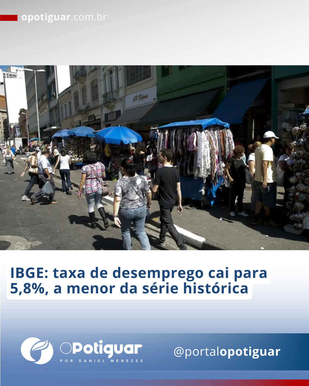 IBGE: taxa de desemprego cai para 5,8%, a menor da série histórica