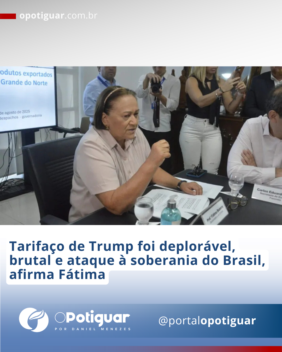 Ao comentar o caso nesta sexta-feira 1º em coletiva de imprensa na Governadoria, Fátima disse que momento é “delicado” e que o chamado tarifaço representa um ataque à soberania do Brasil e que as consequências já são sentidas por empresas e trabalhadores potiguares.
