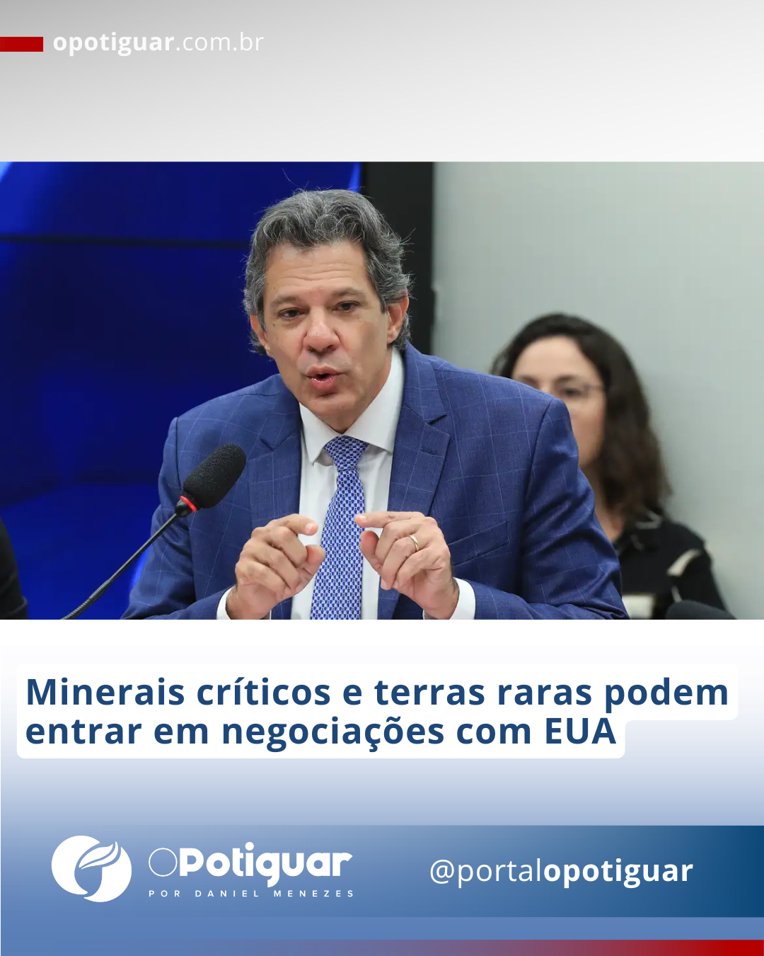 Os minerais críticos e as terras raras podem entrar nas negociações tarifárias com os Estados Unidos, disse nesta segunda-feira (4) o ministro da Fazenda, Fernando Haddad. Segundo ele, um acordo sobre os dois temas pode ser assinado com o governo estadunidense.
