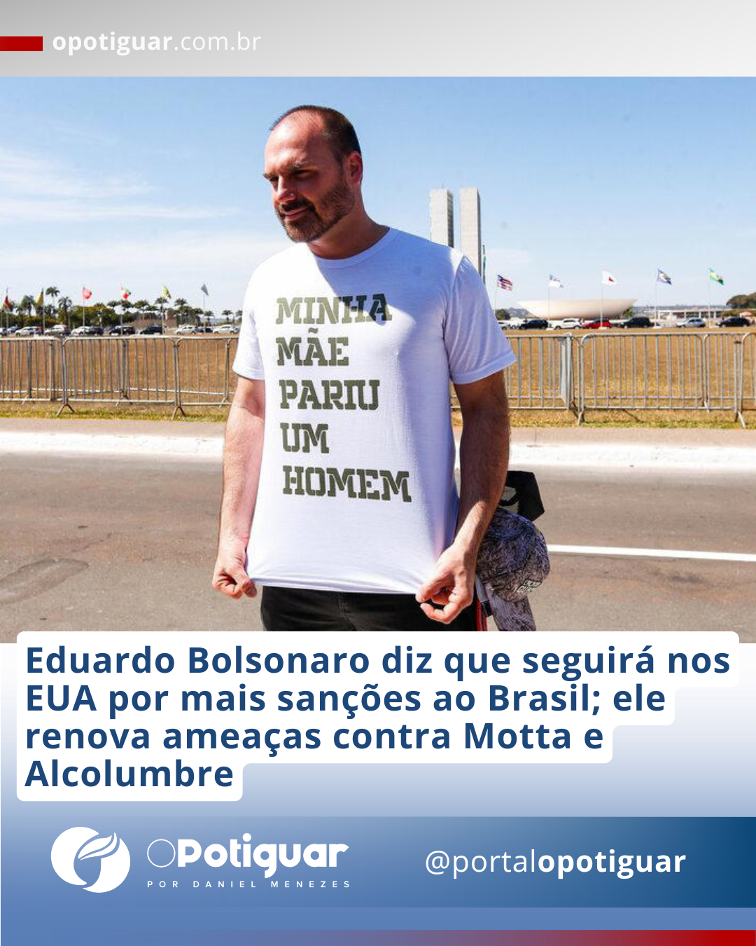 Eduardo Bolsonaro diz que seguirá nos EUA por mais sanções ao Brasil; ele renova ameaças contra Motta e Alcolumbre