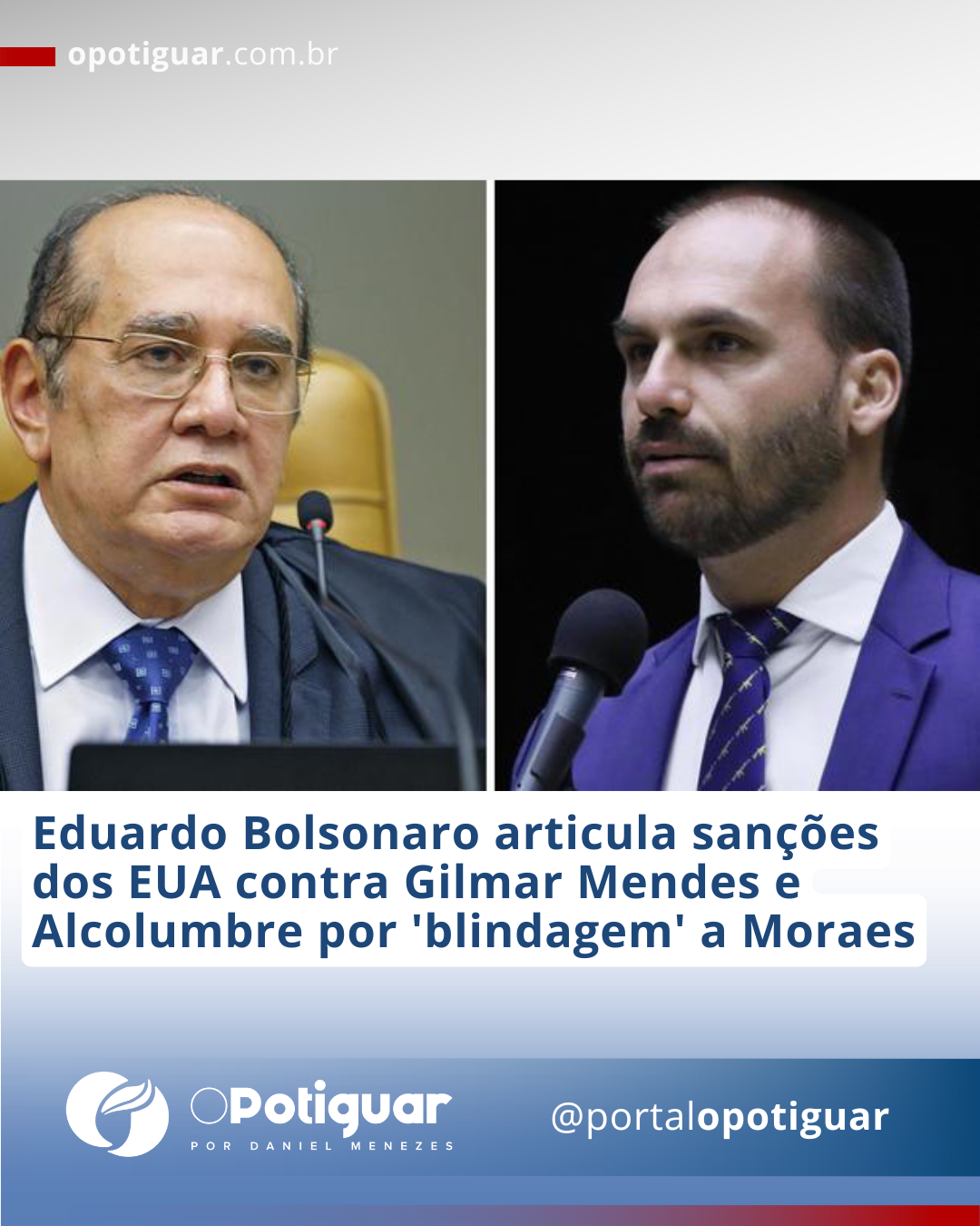 Cresce no círculo político de Eduardo Bolsonaro (PL-SP) a convicção de que o ministro Gilmar Mendes, decano do Supremo Tribunal Federal (STF), e o presidente do Senado, Davi Alcolumbre (União-SP), podem ser os próximos alvos de sanções impostas pelos Estados Unidos, informa Bela Megale, do jornal O Globo. Segundo aliados do deputado, ele cumprirá uma série de agendas em Washington na próxima quarta-feira (13), e ambos os nomes estarão entre os assuntos discutidos.