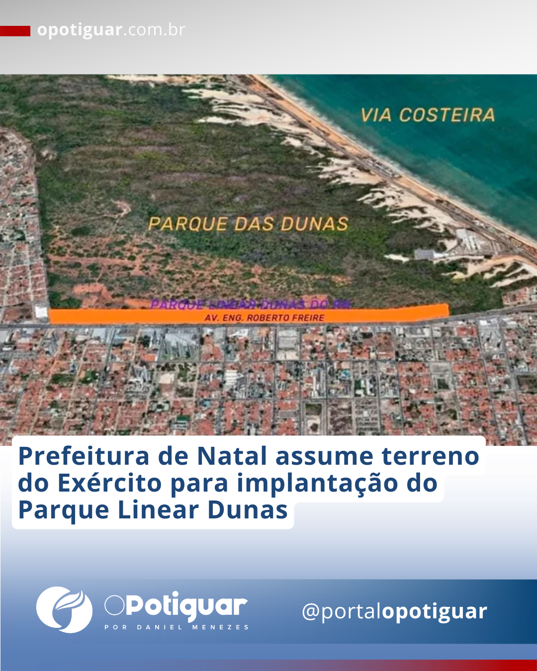 A Prefeitura de Natal recebeu oficialmente, por meio de concessão da União, uma área de mais de 100 mil metros quadrados destinada à criação do Parque Linear Dunas do Rio Grande do Norte. O ato foi formalizado em contrato com o Exército Brasileiro e publicado na edição desta segunda-feira (11) do Diário Oficial do Município (DOM).