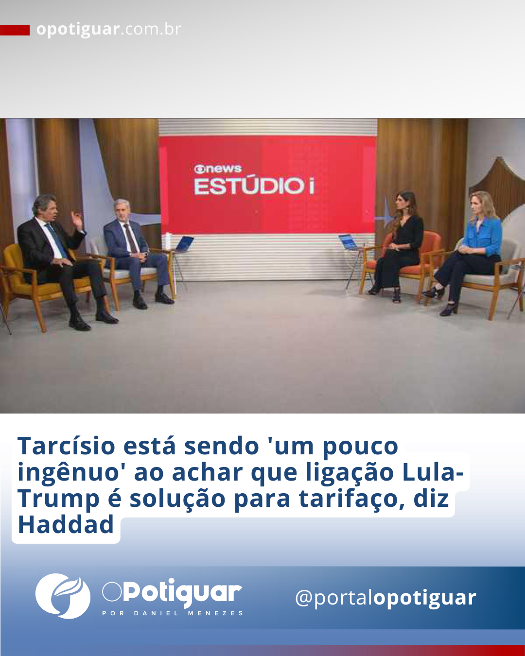 G1 - O ministro da Fazenda, Fernando Haddad, respondeu em entrevista exclusiva ao programa Estúdio i, nesta segunda-feira (11), a declaração do governador de São Paulo, Tarcísio de Freitas (Republicanos), que cobrou uma ligação do presidente Lula a Donald Trump. Para Haddad, a afirmação é ingênua.