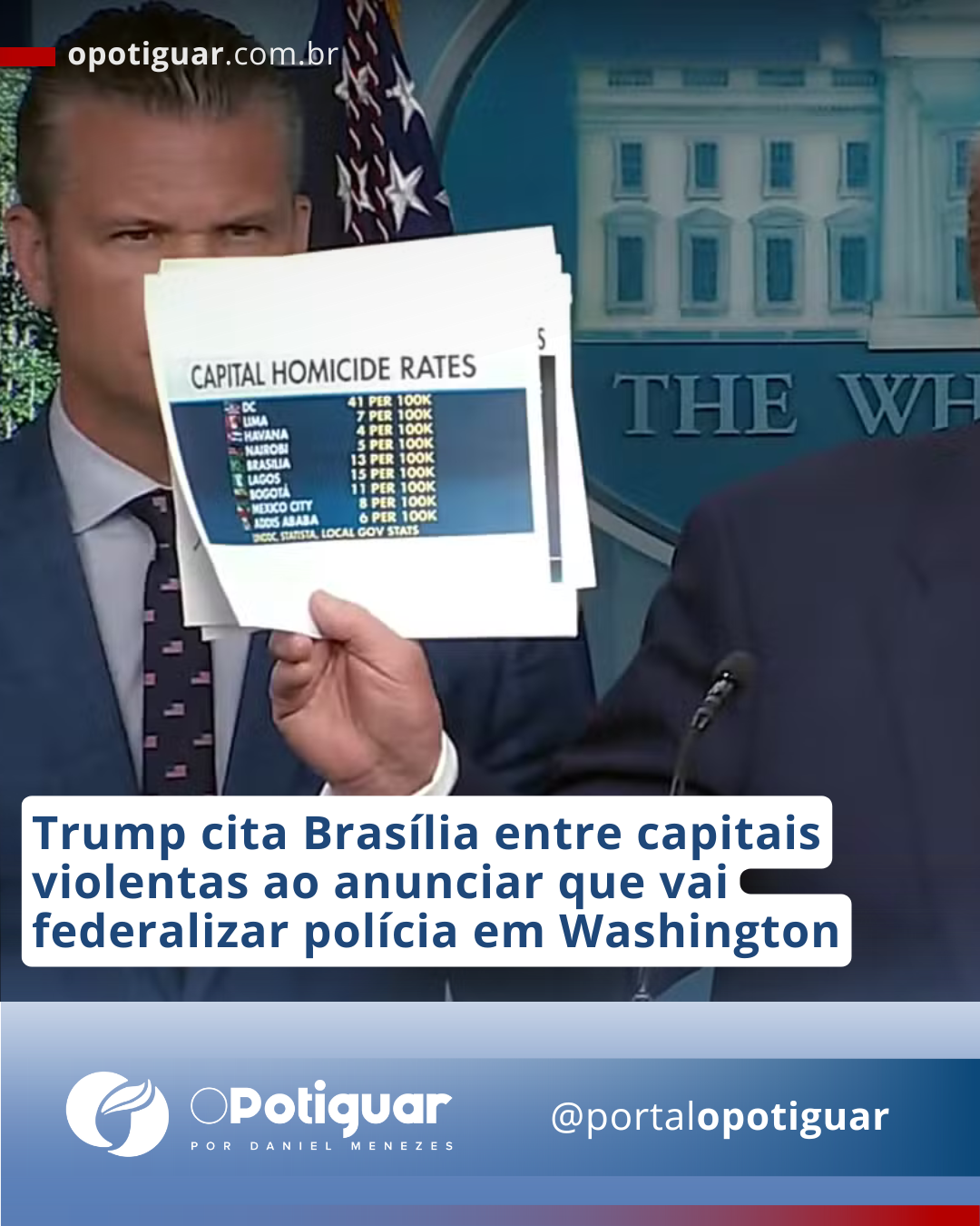 Segundo Trump, a criminalidade na capital dos Estados Unidos superou a registrada em outras capitais nacionais – além de Brasília, ele citou Bogotá (Colômbia), Cidade do Panamá, Cidade do México e Bagdá (Iraque).