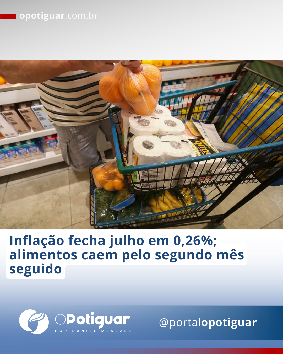 Inflação fecha julho em 0,26%; alimentos caem pelo segundo mês seguido