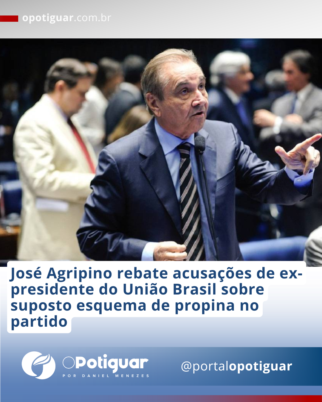 Da 98fm - O ex-senador e atual presidente do diretório do União Brasil no Rio Grande do Norte, José Agripino, afirmou que falta fundamentos para as acusações do ex-presidente da legenda, Luciano Bivar, realizadas em entrevista nesta terça-feira (12,) contra um suposto esquema que envolvia a entrega de diretórios estaduais e municipais em troca de propinas. Segundo a denúncia, o esquema era liderado pelo atual presidente do União, Antônio de Rueda.