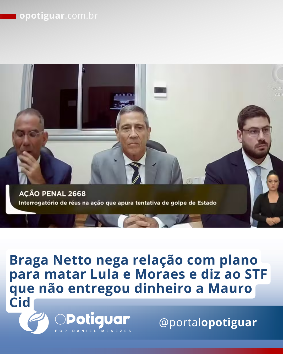 g1 - O general da reserva e ex-ministro da Defesa Walter Braga Netto afirmou, em alegações finais enviadas ao Supremo Tribunal Federal (STF), que não teve participação no suposto plano denominado “Punhal Verde Amarelo” nem entregou dinheiro ao tenente-coronel Mauro Cid, ex-ajudante de ordens do ex-presidente Jair Bolsonaro.