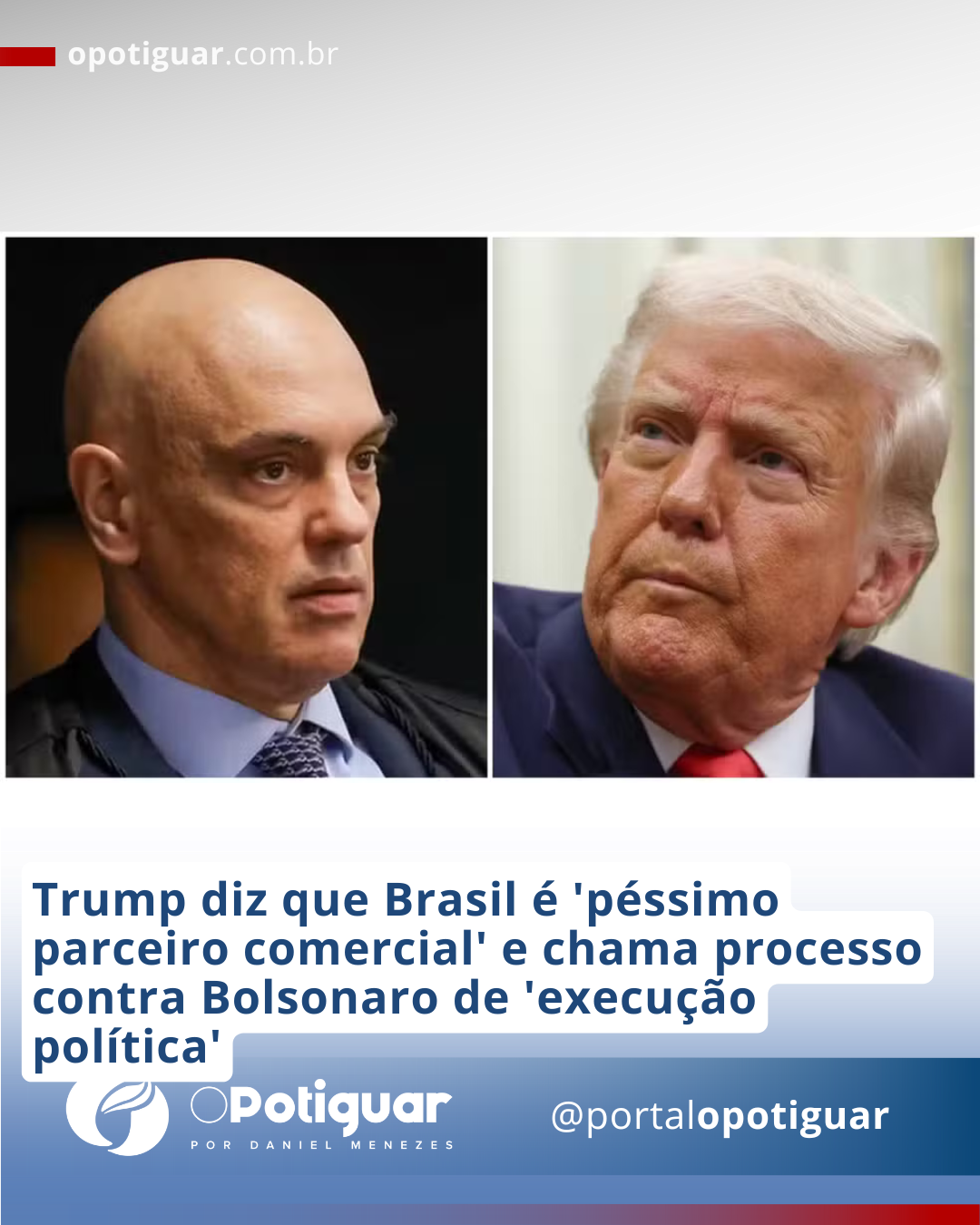 G1 - O presidente dos Estados Unidos, Donald Trump, afirmou que o Brasil é um "péssimo parceiro comercial" e chamou o processo contra o ex-presidente brasileiro Jair Bolsonaro de "execução política" em uma conversa com jornalistas na Casa Branca nesta quinta-feira (14).