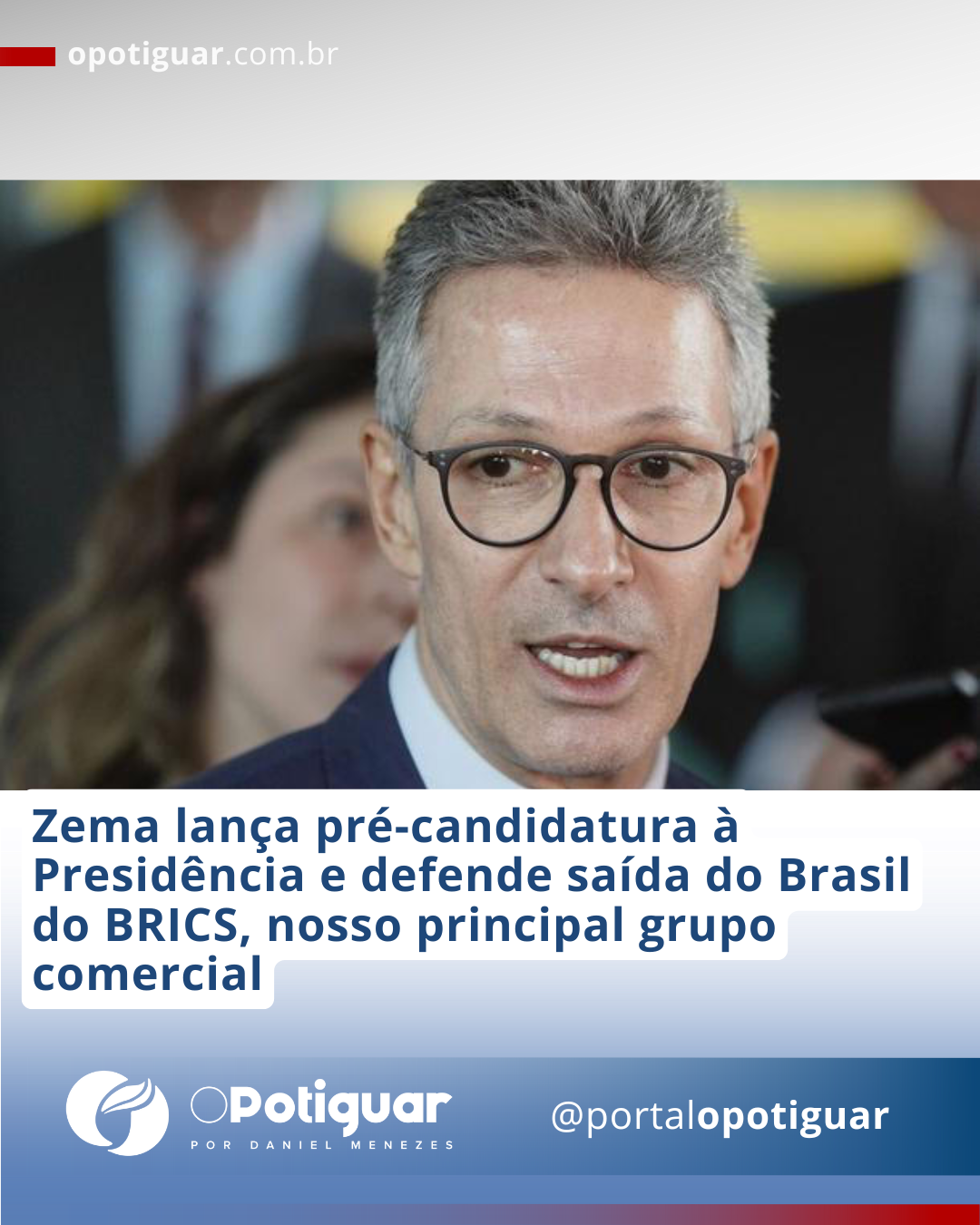 Zema lança pré-candidatura à Presidência e defende saída do Brasil do BRICS, nosso principal grupo comercial