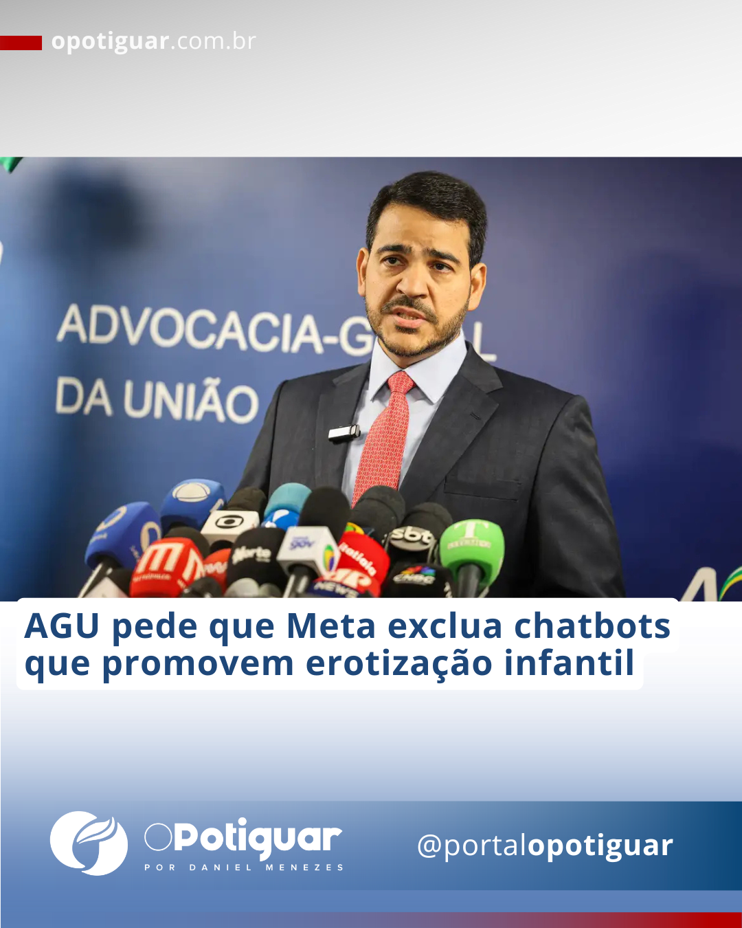 A Advocacia-Geral da União (AGU) enviou nesta segunda-feira (18) uma notificação às redes sociais Instagram, Facebook e WhatsApp para solicitar a exclusão de robôs de inteligência artificial que simulam aparência infantil e realizam diálogos com conteúdo sexual.