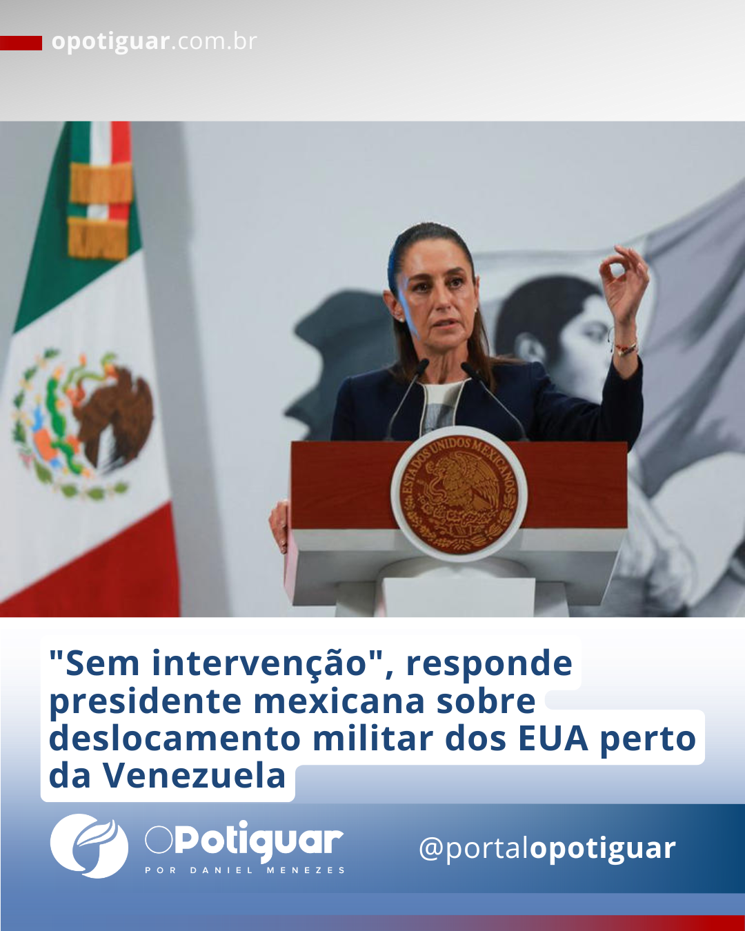 (Reuters) - A presidente do México, Claudia Sheinbaum, recorreu nesta terça-feira para a Constituição de seu país e para os princípios de não intervenção e autodeterminação dos povos quando questionada sobre o deslocamento militar dos EUA na costa da Venezuela.