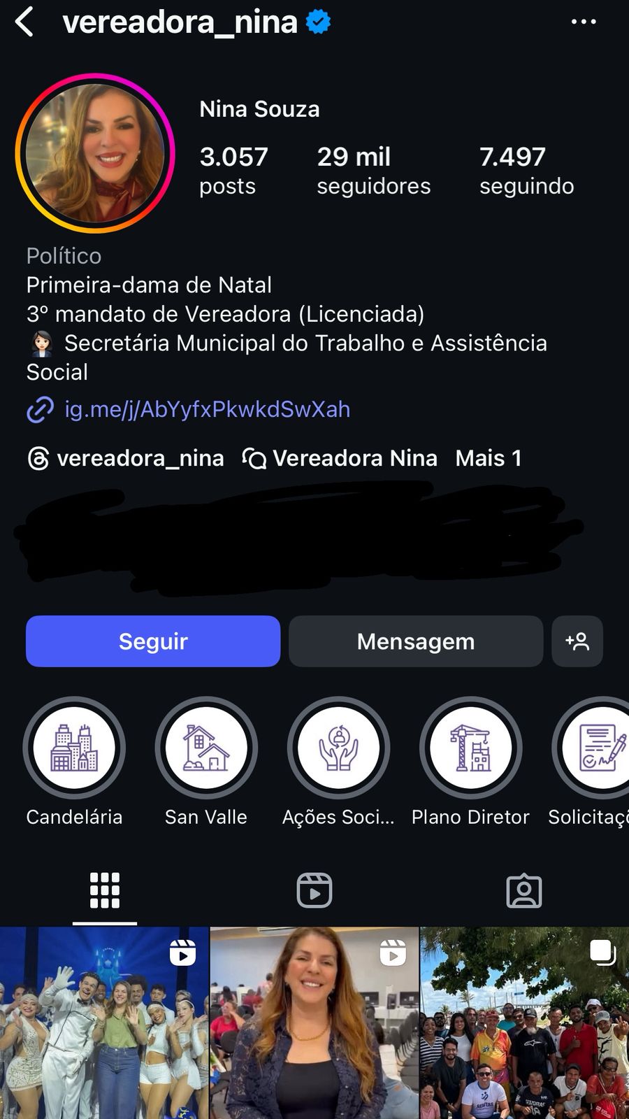 A vereadora, primeira dama e secretária Nina Souza está pessoalmente vasculhando as redes dos vereadores.