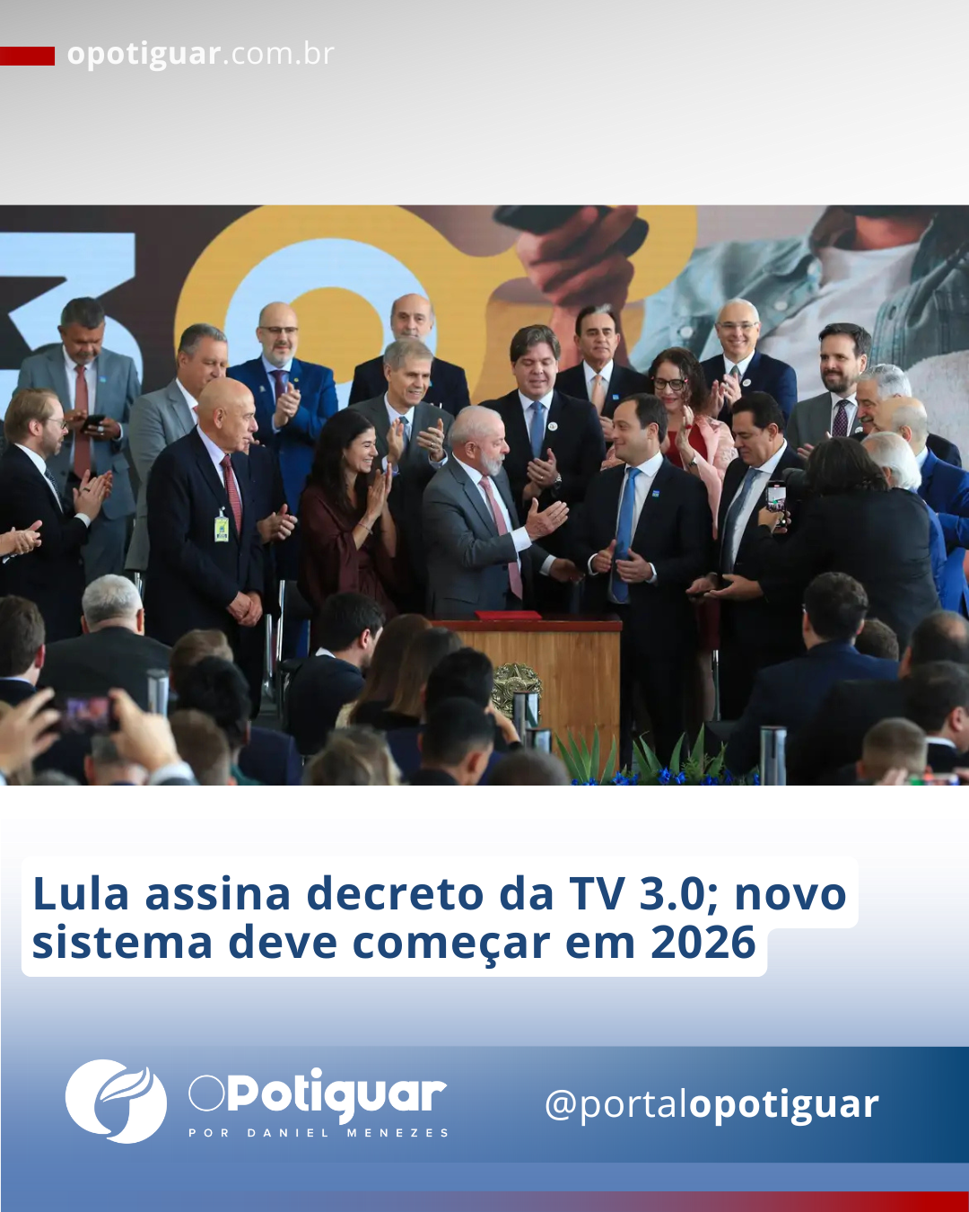 O presidente Luiz Inácio Lula da Silva assinou nesta quarta-feira (27), em cerimônia no Palácio do Planalto, o decreto de implementação da TV 3.0, considerada a nova geração da tecnologia de televisão aberta e gratuita brasileira. O evento contou com a presença e o apoio de representantes das principais emissoras de televisão aberta do país.