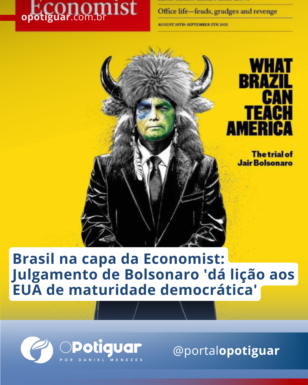 "Os Estados Unidos estão se tornando mais corruptos, protecionistas e autoritários — com Donald Trump, esta semana, mexendo com o Federal Reserve (Fed) e ameaçando cidades controladas pelos democratas. Em contraste, mesmo com o governo Trump punindo o Brasil por processar Bolsonaro, o próprio país está determinado a salvaguardar e fortalecer sua democracia", diz a Economist.