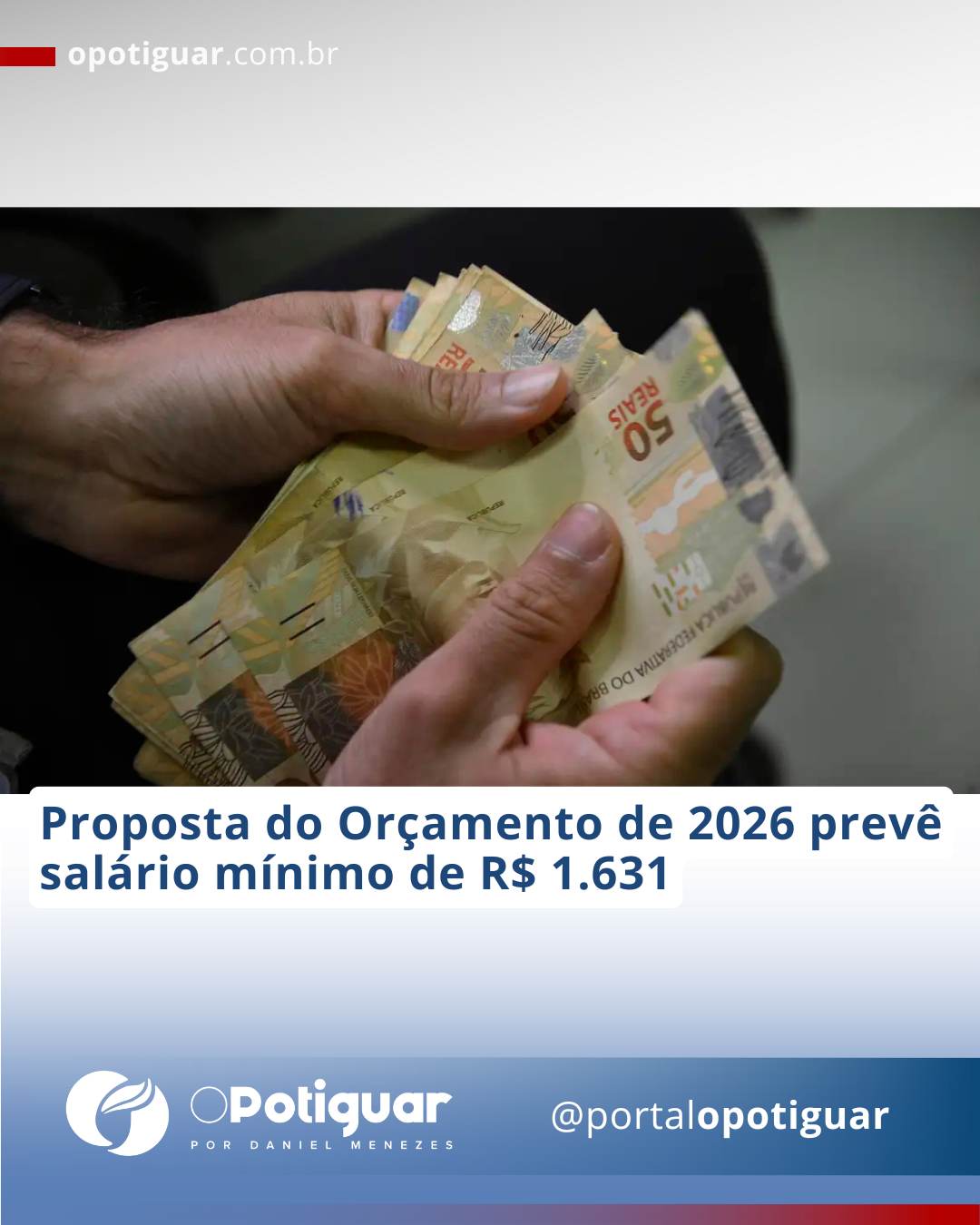 A nova regra de correção fez o governo elevar a previsão para o salário mínimo no próximo ano. O Projeto da Lei Orçamentária de 2026, enviado na noite desta sexta-feira (29) ao Congresso, prevê mínimo de R$ 1.631, R$ 1 mais alto que o valor de R$ 1.630 proposto na Lei de Diretrizes Orçamentárias (LDO).