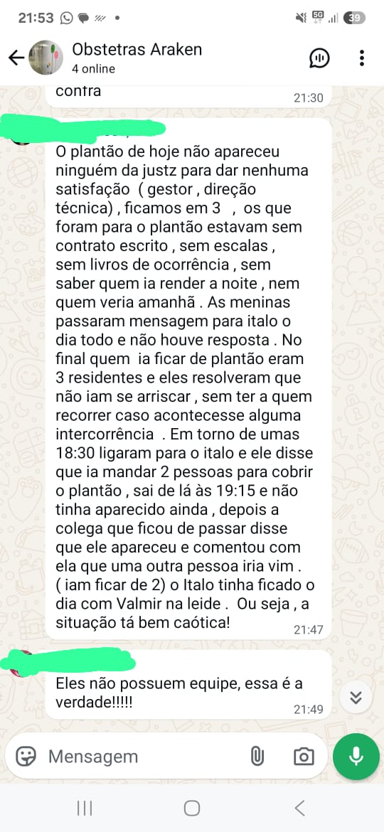 O blog teve acesso a esse e outros relatos de profissionais da saúde desesperados com a situação.