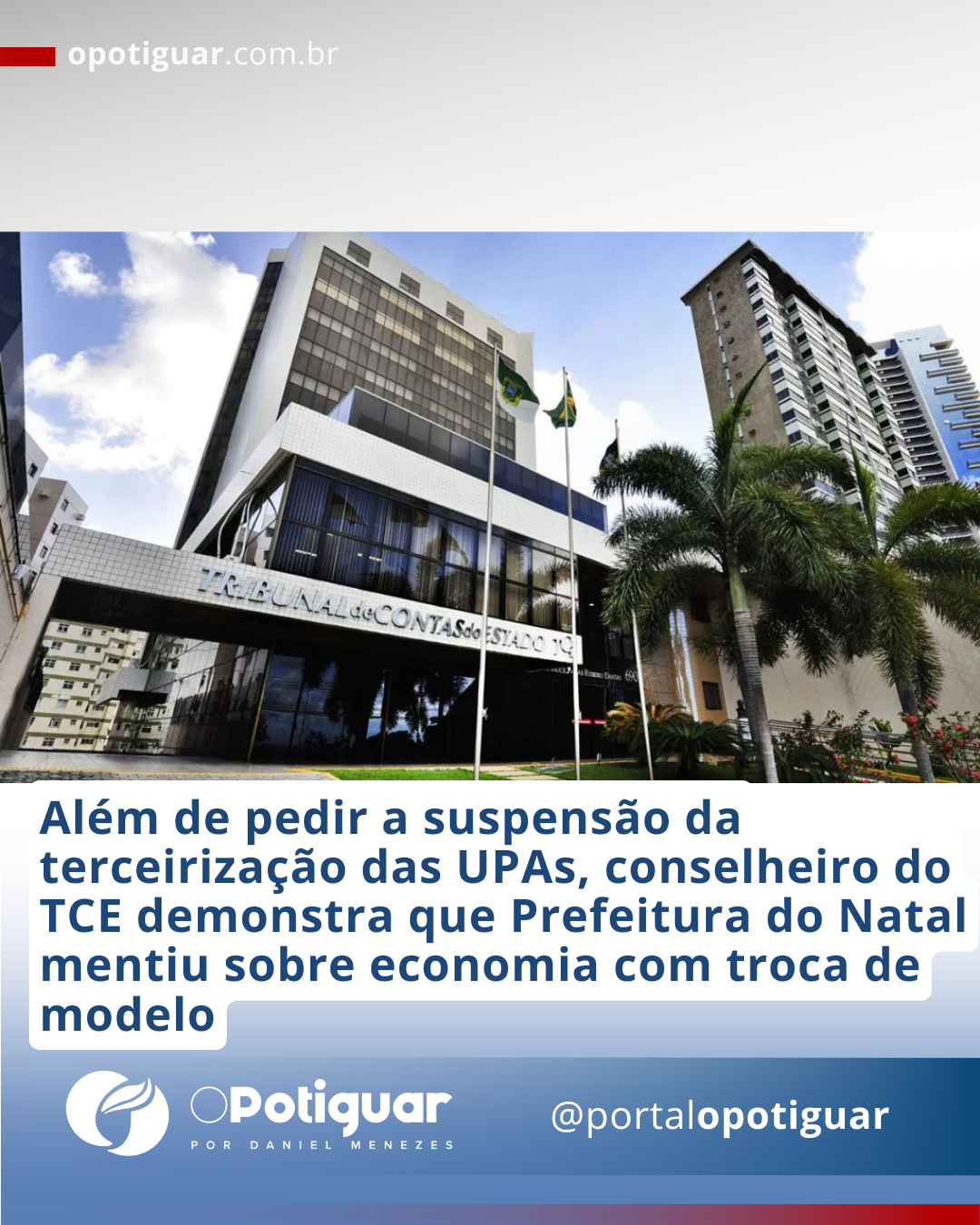 Além de pedir a suspensão da terceirização das UPAs, conselheiro do TCE demonstra que Prefeitura do Natal mentiu sobre economia com troca de modelo