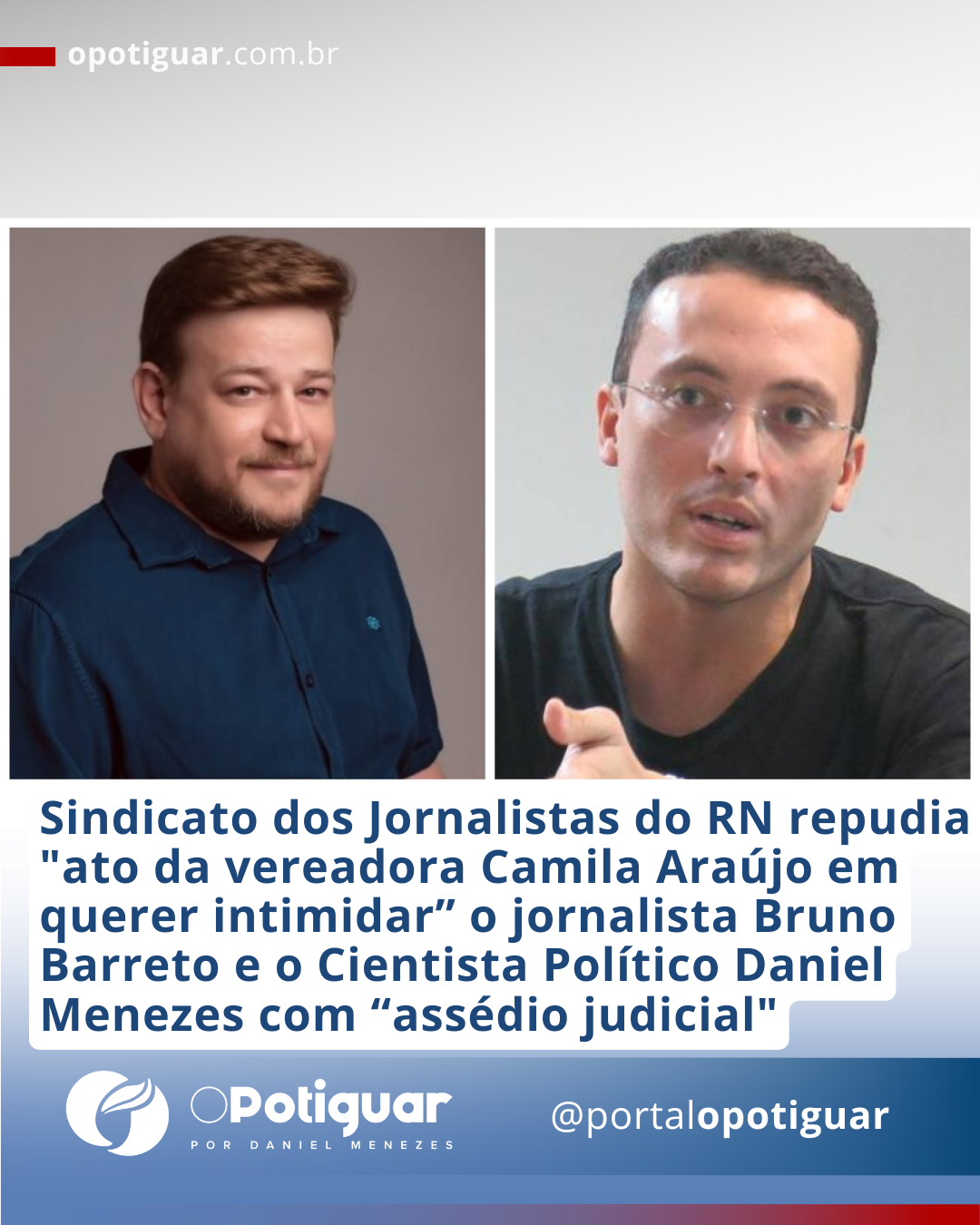 Sindicato dos Jornalistas do RN repudia "ato da vereadora Camila Araújo em querer intimidar” o jornalista Bruno Barreto e o Cientista Político Daniel Menezes com “assédio judicial"