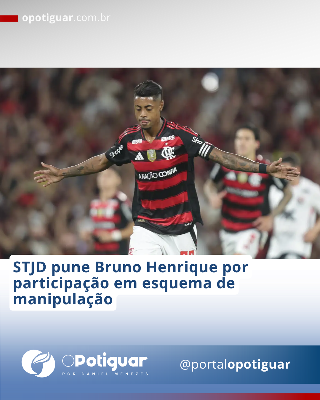 O STJD (Superior Tribunal de Justiça Desportiva) decidiu punir, na esfera esportiva, o atacante Bruno Henrique, do Flamengo, com 12 jogos de suspensão e uma multa de R$ 60 mil por participação em um esquema de manipulação de apostas na internet (bets). A decisão, que foi proferida pela Primeira Comissão Disciplinar do Tribunal nesta quinta-feira (4), pode ser alvo de recurso no Pleno.