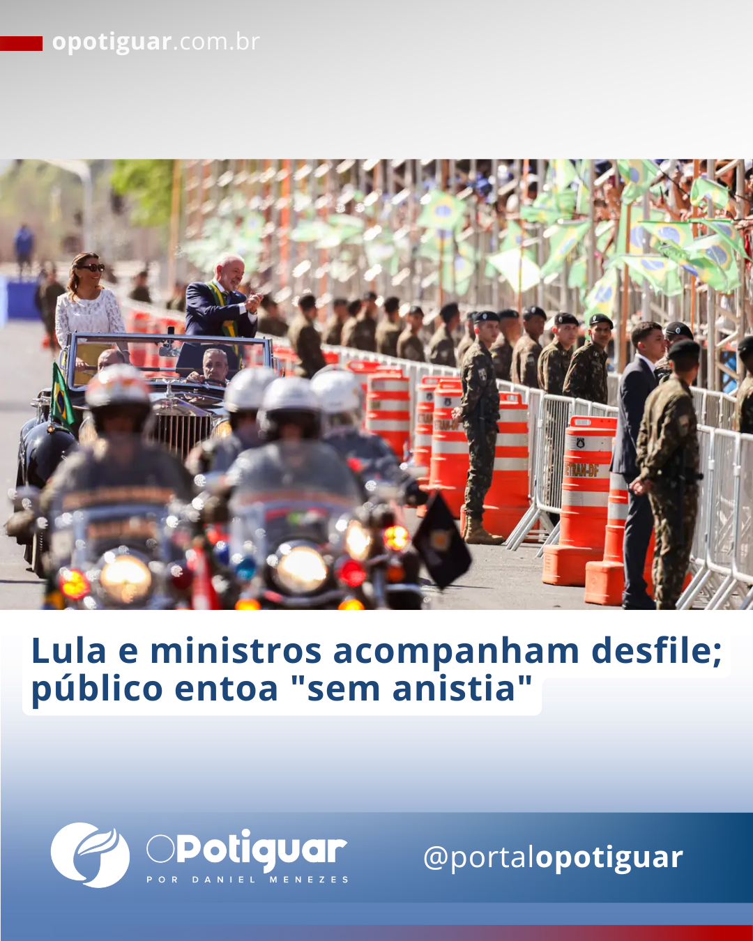 Aos gritos de "sem anistia" e "soberania não se negocia", por parte do público, o presidente Luiz Inácio Lula da Silva abriu neste domingo (7) o desfile cívico-militar do Dia da Independência, na Esplanada dos Ministérios, em Brasília. O evento começou por volta das 9h20. De acordo com a Secretaria de Comunicação Social da Presidência da República (Secom), o público estimado foi de 45 mil pessoas em toda a Esplanada.
