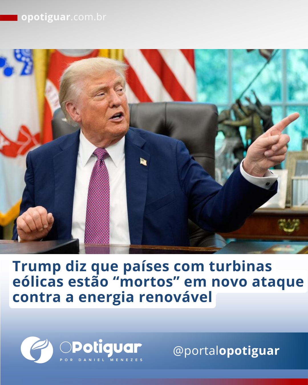 Segundo ele, os custos de energia nesses locais “dispararam e suas populações estão irritadas”. Na postagem, Trump afirmou ainda que as turbinas eólicas “estão ‘matando’ muitos políticos ruins que estão perdendo seus cargos por causa delas”.