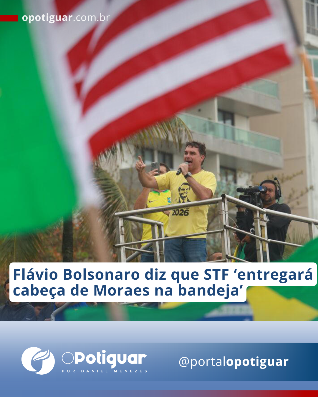 Do Estadão - O senador Flávio Bolsonaro (PL-RJ) afirmou neste domingo, 7, que os ministros do Supremo Tribunal Federal (STF) vão entregar a cabeça de Alexandre de Moraes em uma bandeja aos brasileiros porque “sabem que ele foi longe demais”, “sabem que Bolsonaro é inocente” e “sabem que não houve tentativa de golpe” no País.