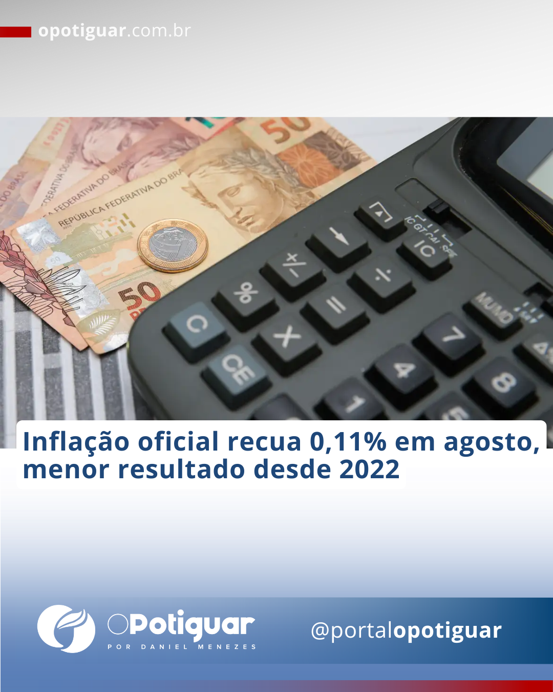 Inflação oficial recua 0,11% em agosto, menor resultado desde 2022