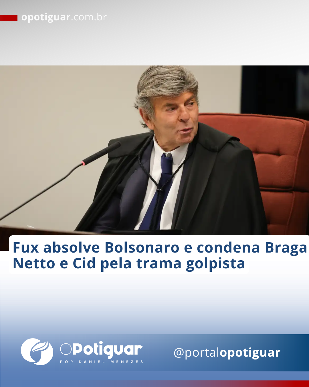 O ministro Luiz Fux, do Supremo Tribunal Federal (STF), votou nesta quarta-feira (10) para absolver o ex-presidente Jair Bolsonaro e mais cinco aliados na ação penal da trama golpista.