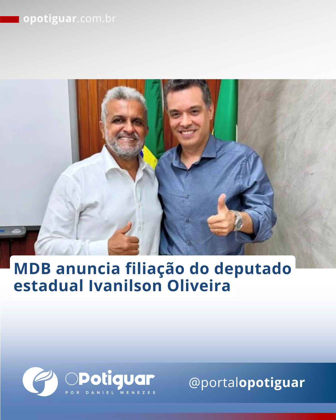 O MDB do Rio Grande do Norte anunciou nesta quarta-feira 10 a filiação do deputado estadual Ivanilson Oliveira. O parlamentar vai deixar o União Brasil. Em nota, o MDB informou que o parlamentar aceitou o convite do vice-governador e presidente estadual da legenda, Walter Alves, e vai oficializar sua entrada no partido.