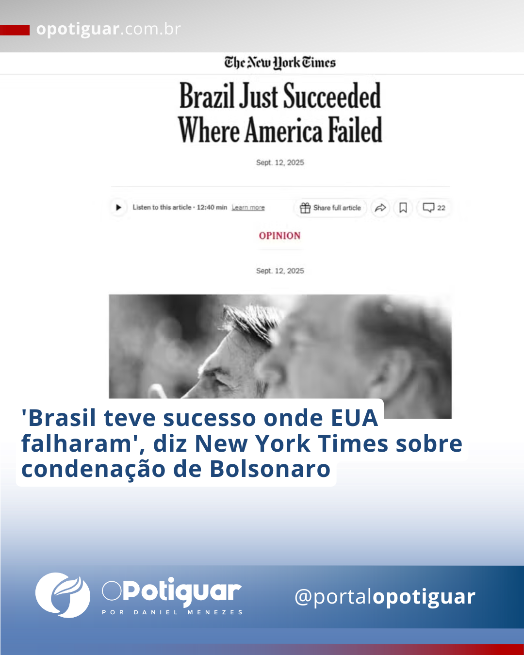 G1 - O Brasil teve sucesso onde os Estados Unidos falharam, afirmou um artigo de opinião publicado nesta sexta-feira (12) no jornal americano "The New York Times" sobre a condenação do ex-presidente Jair Bolsonaro (PL), decretada pelo STF na quinta.