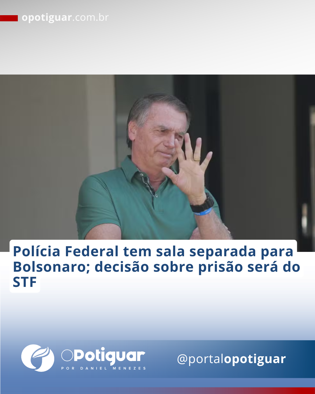 G1 - A Polícia Federal (PF) já preparou uma sala separada com cama, cadeira e banheiro privativo para o ex-presidente Jair Bolsonaro (PL), caso o Supremo Tribunal Federal (STF) determine que sua prisão em regime fechado seja cumprida na PF e não no presídio de segurança máxima, como a Papuda. A informação foi confirmada ao blog por investigadores da PF.