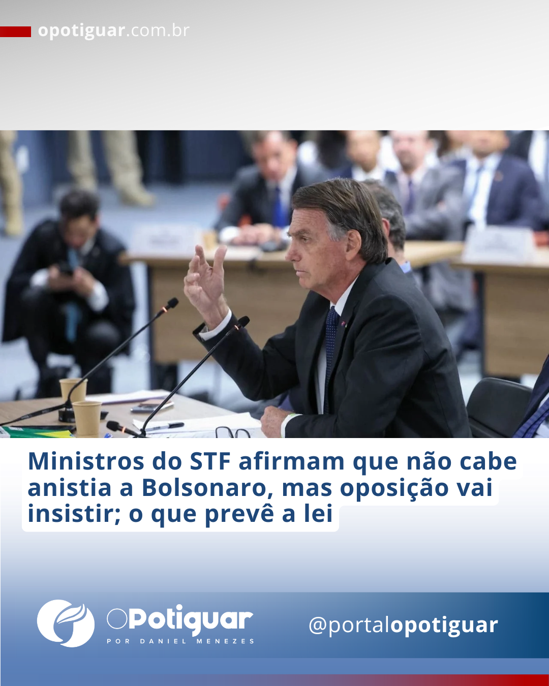 Ministros do STF afirmam que não cabe anistia a Bolsonaro, mas oposição vai insistir; o que prevê a lei