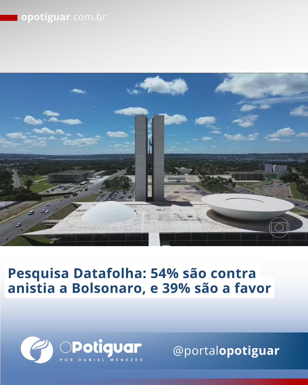 G1 - Pesquisa Datafolha divulgada neste sábado (13) aponta que 54% dos brasileiros são contra o Congresso Nacional aprovar uma anistia para livrar o ex-presidente Jair Bolsonaro (PL) da condenação por tentativa de golpe de Estado e outros quatro crimes. Outros 39% defendem a ideia. 2% afirmam ser indiferentes e 4% não souberam opinar.