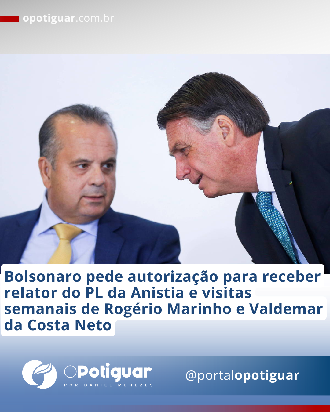 Bolsonaro pede autorização para receber relator do PL da Anistia e visitas semanais de Rogério Marinho e Valdemar da Costa Neto