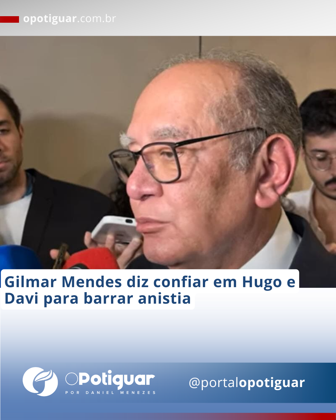 O ministro Gilmar Mendes, do Supremo Tribunal Federal (STF), afirmou nesta segunda-feira (15) que confia nos presidentes da Câmara dos Deputados, Hugo Motta (Republicanos-PB), e do Senado, Davi Alcolumbre (União-AP), para que a proposta de anistia aos envolvidos nos atos de 8 de janeiro de 2023 não avance no Congresso.