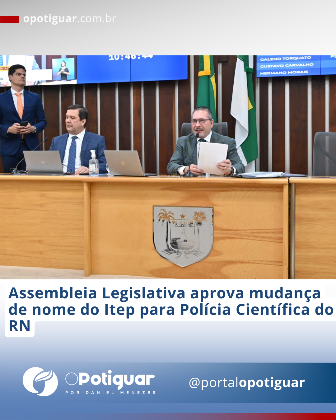 Os deputados estaduais aprovaram, na sessão plenária desta quarta-feira (17), o projeto de lei complementar que altera a denominação do Instituto Técnico-Científico de Perícia do Rio Grande do Norte (Itep-RN). A partir da sanção, o órgão passará a se chamar Polícia Científica do Rio Grande do Norte.