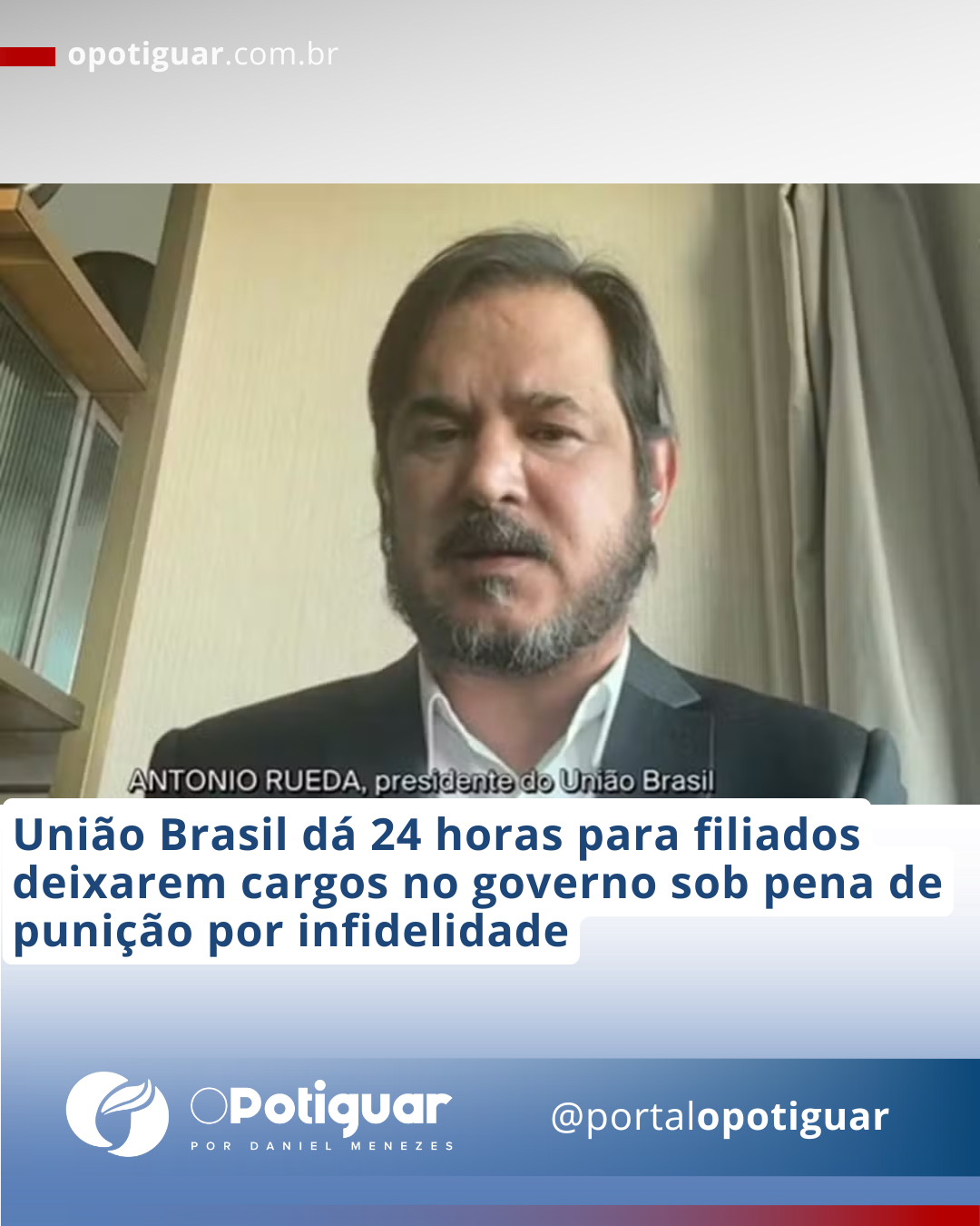 G1 - O União Brasil divulgou nesta quinta-feira (18) uma nota em que afirma ter dado prazo de 24 horas para que os filiados ao partido deixem os cargos em comissão que ocupam no governo do presidente Luiz Inácio Lula da Silva (PT).