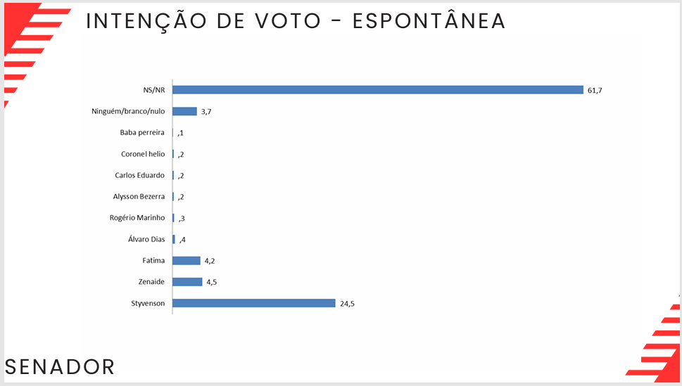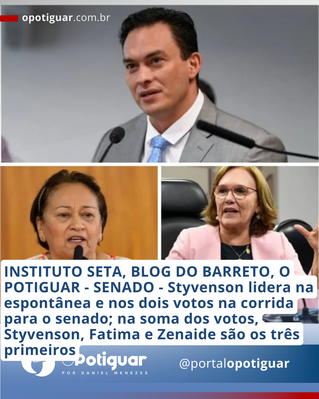 INSTITUTO SETA, BLOG DO BARRETO, O POTIGUAR - SENADO - Styvenson lidera na espontânea e nos dois votos na corrida para o senado; na soma dos votos, Styvenson, Fatima e Zenaide são os três primeiros