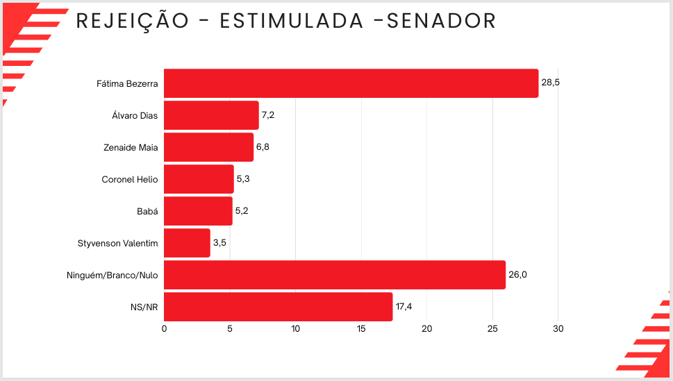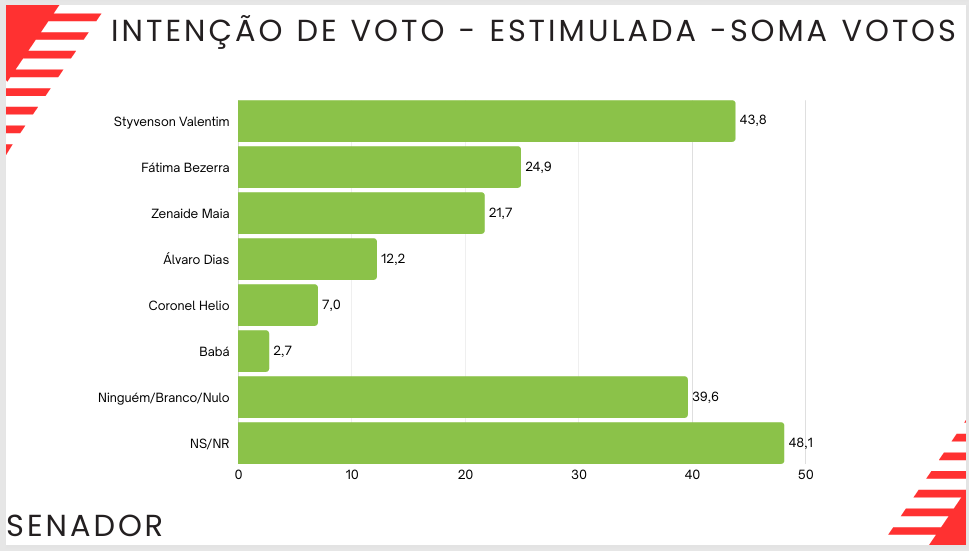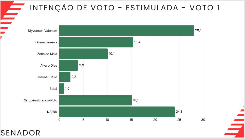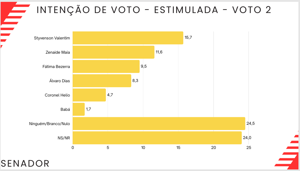 O senador Styvenson Valentim lidera na espontânea e nos dois votos na corrida para o senado no RN. Além disso, é o menos rejeitado.