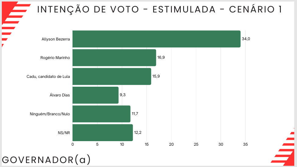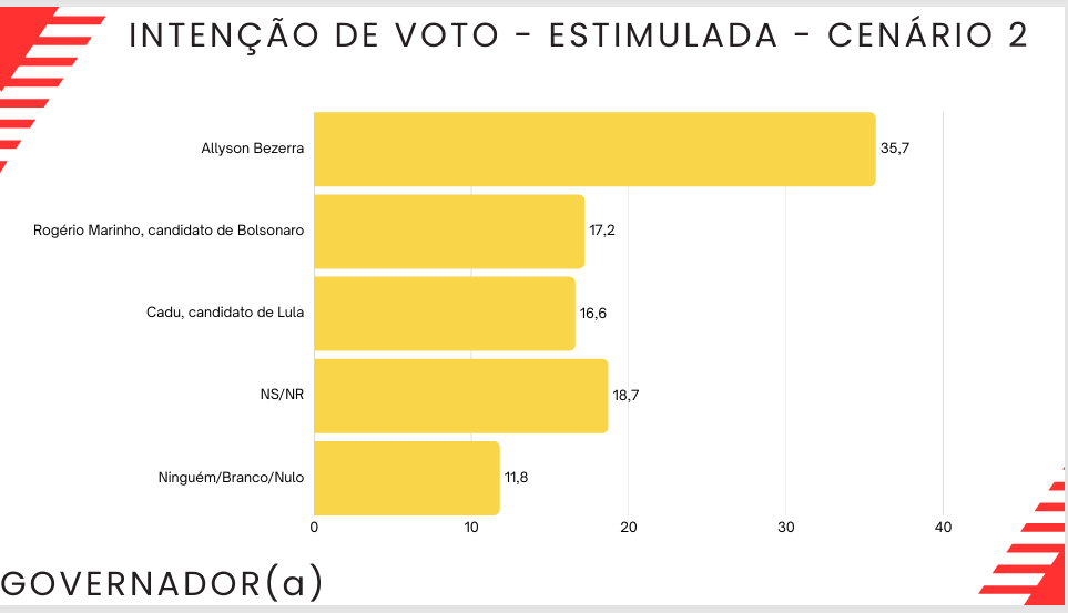 O prefeito de Mossoró Allyson Bezerra lidera na espontânea e nos cenários estimulados com Álvaro Dias e sem Álvaro Dias na corrida para o governo, conforme pesquisa realizada pelo Instituto Seta em todo o RN. Nas estimuladas, ele é seguido por Rogério Marinho e Cadu, sendo estimulado como "candidato de Lula". Em um dos cenários, Rogério Marinho é apresentado como "candidato de Bolsonaro", mas não há diferença estatisticamente relevante.