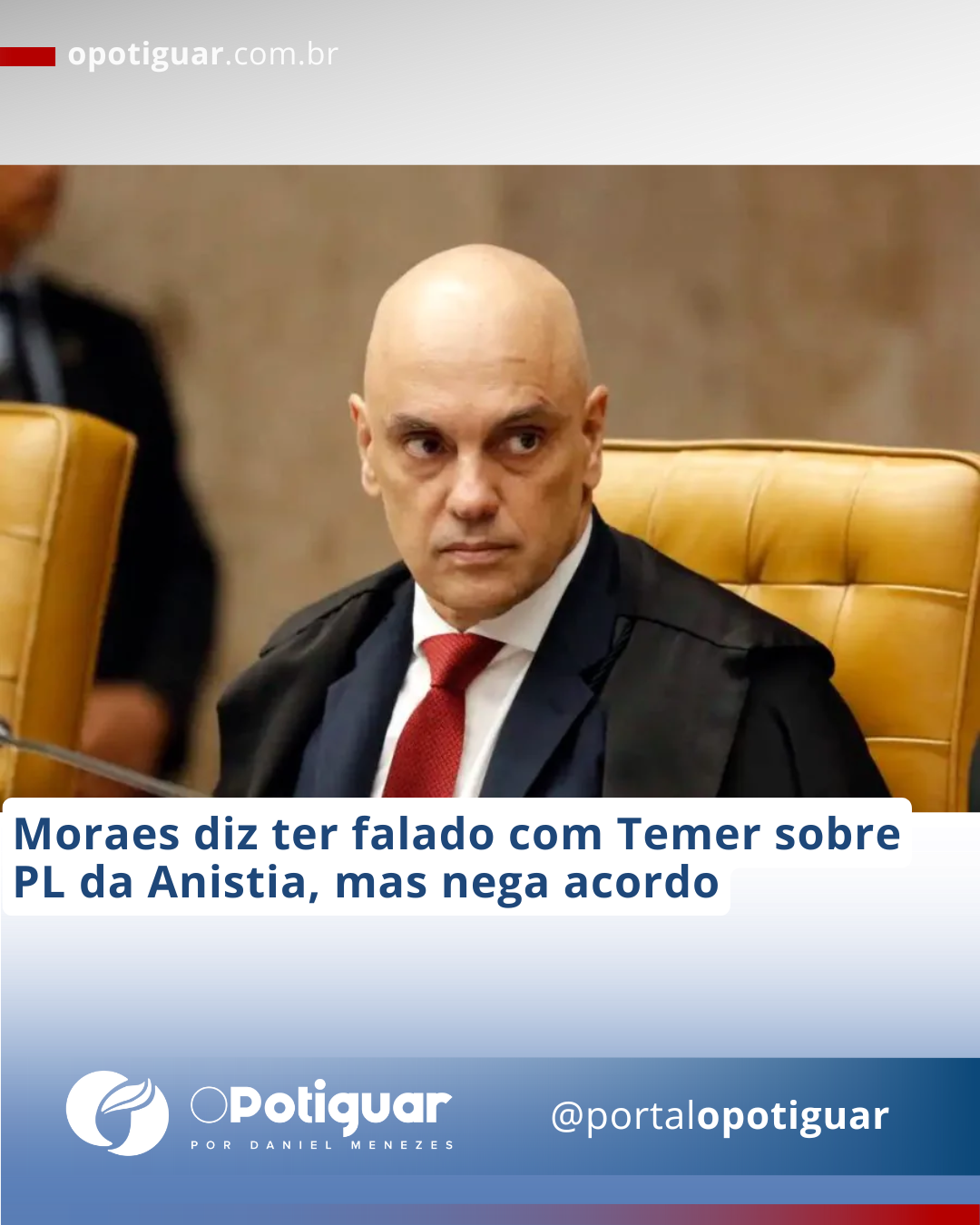O ministro do STF (Supremo Tribunal Federal), Alexandre de Moraes, disse a interlocutores ter conversado apenas com o ex-presidente Michel Temer por cinco minutos na noite desta quinta-feira (18) sobre o PL da Anistia, mas que não há acordo algum sobre seus termos até porque sequer há um texto do projeto. As informações são do jornalista Caio Junqueira, da CNN Brasil.