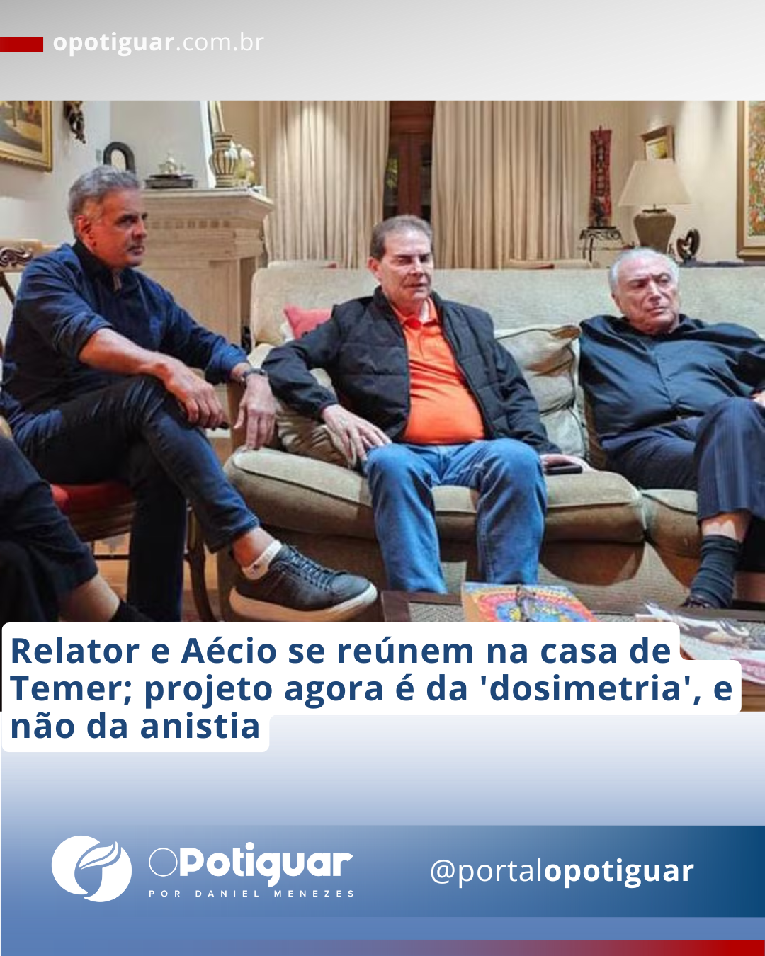 Além de Temer e o relator, também participaram o deputado Aécio Neves (PSDB-MG) e o presidente da Câmara dos Deputados, Hugo Motta (Republicanos-PB). Este último remotamente. O encontro foi na noite desta quinta-feira (18).