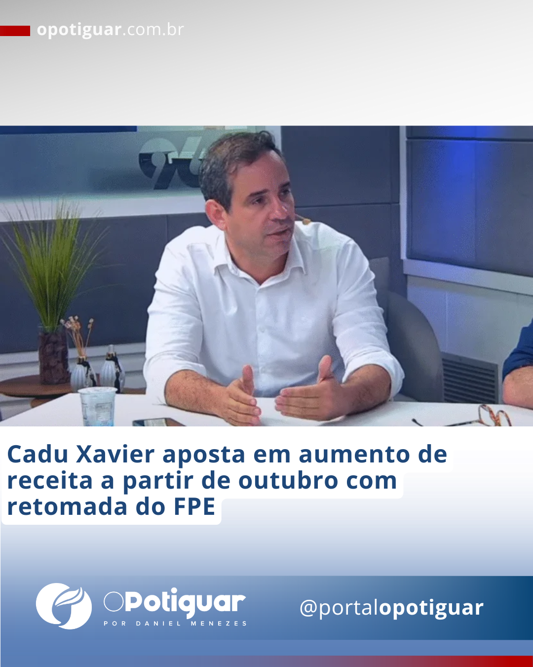 O secretário de Fazenda do Rio Grande do Norte, Cadu Xavier, afirmou que a situação financeira do Estado deve melhorar a partir de outubro, com a alta na arrecadação. Segundo Cadu, o período de junho a outubro é marcado pela queda do Fundo de Participação dos Estados (FPE), o que agrava a crise no caixa.