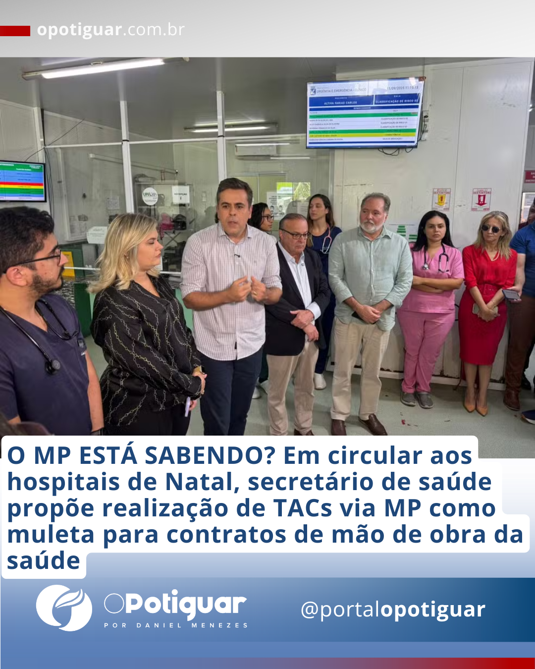 O MP ESTÁ SABENDO? Em circular aos hospitais de Natal, secretário de saúde propõe realização de TACs via MP como muleta para contratos de mão de obra da saúde
