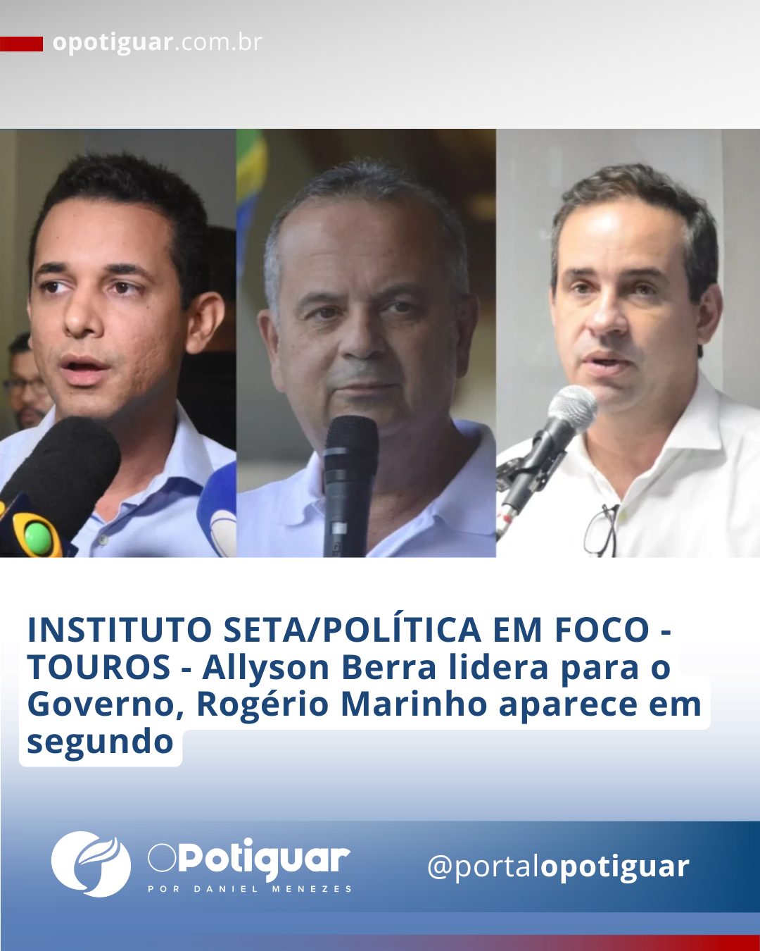 INSTITUTO SETA/POLÍTICA EM FOCO - TOUROS - Allyson Berra lidera para o Governo, Rogério Marinho aparece em segundo