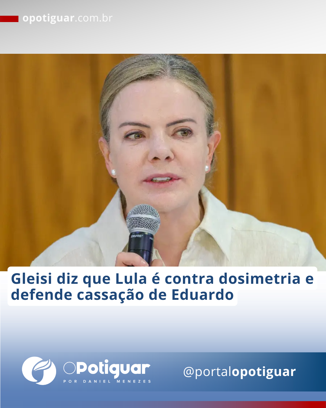 Gleisi diz que Lula é contra dosimetria e defende cassação de Eduardo