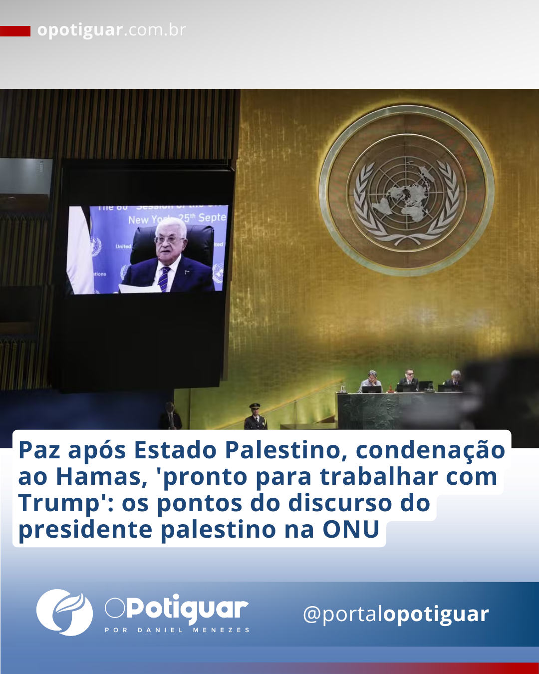 Paz após Estado Palestino, condenação ao Hamas, 'pronto para trabalhar com Trump': os pontos do discurso do presidente palestino na ONU
