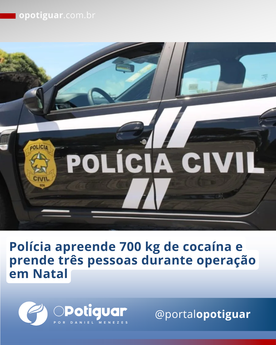 Polícia apreende 700 kg de cocaína e prende três pessoas durante operação em Natal